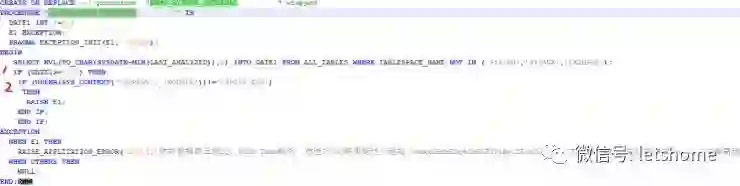 标记1的这个语句是判断是否发动入侵。勒索者根据当前表空间的表的最小统计信息收集时间和当前时间比决定是入侵数据库实施勒索还是先保持潜伏,直到条件成熟再进行勒索。勒索者认为超过1200天的数据库是值得入侵的,里面很可能存在用户重要的数据,于是判断是否满足1200天,一旦满足则继续后续的入侵。