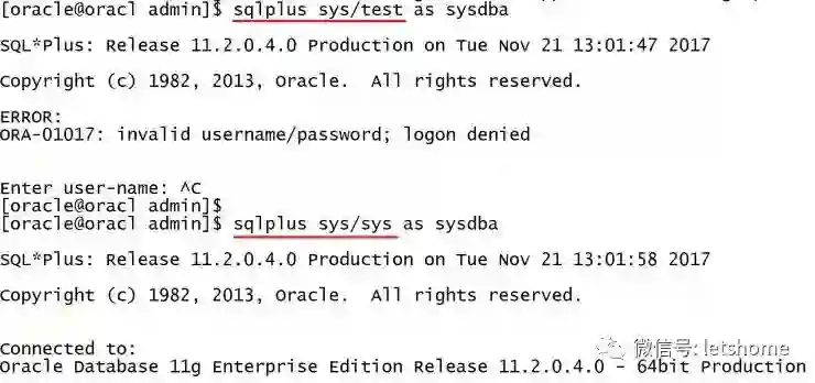 根据上述想法,咱们把整个文件中的内容替换成我们已知密码的文件,再使用低权限账号执行 sql ,完成之后当再一次登录数据库时会发现,原来 sys 账号的 test 密码已经无法正常登录,修改后的 sys 密码却可以正常登录数据库。