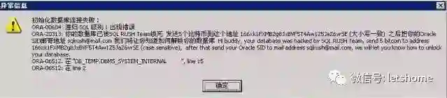 上图是客户某次登录Oracle数据库时出现的勒索警告:要求用户上交5个比特币来换取解锁数据库的服务。经过到用户侧进行实地调研,最后锁定了用户一台机器上的破解版PL SQL Developer上。经过检查发现,PL SQL Developer主目录的自动执行sql脚本中存在35KB的恶意代码。黑客用Oracle 加密函数对内容进行了加密,破解后确定导致登录失败就是这个恶意脚本所为。