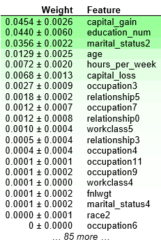 ❷ 局部解释:试图理解 "为什么模型为单个实例做出具体决策?" 和 "为什么模型为一组实例做出具体决策?"。对于本地可解释性,我们不关心模型的固有结构或假设,我们将其视为黑盒子。为了理解单个数据点的预测决策,我们专注于该数据点并查看该点周围的特征空间中的局部子区域,并尝试基于该局部区域理解该点的模型决策。本地数据分布和特征空间可能表现完全不同,并提供更准确的解释而不是全局解释。局部可解释模型 - 不可知解释 ( LIME ) 框架是一种很好的方法,可用于模型不可知的局部解释。我们可以结合使用全局和局部解释来解释一组实例的模型决策。