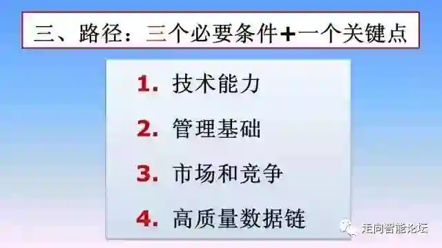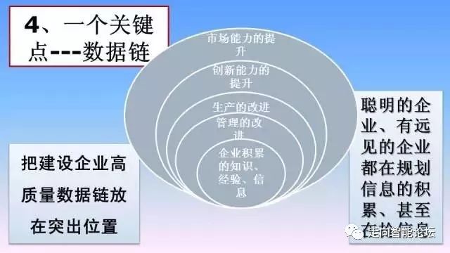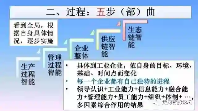 杨学山指出,数字化、网络化、智能化是发展的必然趋势,CIO必须把握这一变革的本质和规律,引领数字化转型和智能制造。他在报告中提到,智能制造(工业智能)包含两种能力和四个方面,即工业能力(包含基建能力和动能两个方面)和信息能力(包含计算能力和容积能力两个方面)。走向智能制造(工业智能)包含生产过程、管理过程、企业整体智能、供应链和生态链五部曲。这五步既有时间上整体上的前后相继的关系,但每部分又有广泛深刻的内涵和外延,都可以独立的实现。具体到不同的企业都有自己独特的路径。此外,走向智能制造(工业智能)还需要技术能力、管理基础、市场和竞争三个必要条件加一个关键点--数据链。