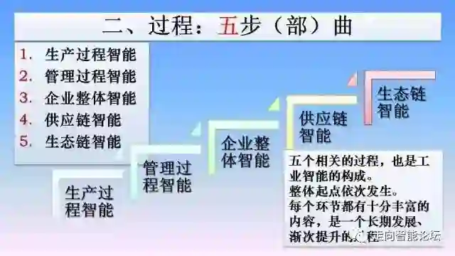 近日,在“2017全球信息技术主管大会”主论坛上,北京大学教授、工信部原副部长杨学山作了题为《工业智能的技术构成与实现路径》的主旨报告,指出数字化、网络化、智能化是发展的必然趋势,必须把握这一变革的本质和规律,来引领数字化转型和智能制造。走向智能制造(工业智能)包含生产过程、管理过程、企业整体智能、供应链和生态链五部曲。本文来自:首席信息官联盟(ID:China-CIO-Union),由《走向智能论坛》微信公众号推荐阅读。