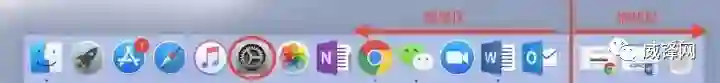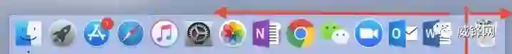 再回来说 Dock 哈,除了最左的 Finder 和最右的废纸篓,其它程序应用都是可以在各自的区域移动的,方法依然是简单易操作的“拖”。给大家举个例子:
