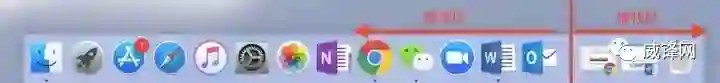 我们将 Dock 左边的区域称为程序区,也就是这边放的都是可以独立运行的程序;而右边叫做堆栈区,放的是所有需要依靠左边程序打开的文档,文件夹等。例如现在被我打开的 Chrome 浏览器,Word 文档,都是放在右边,所以左右是不能互相移动的。