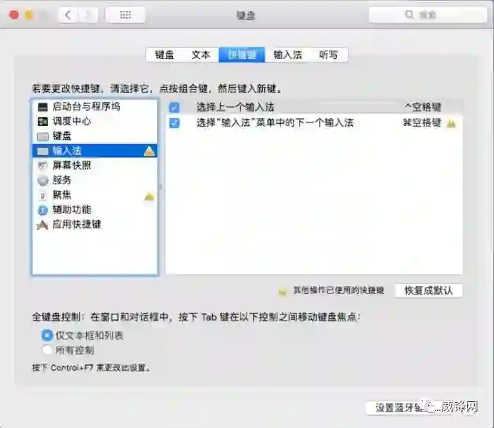 几乎所有的设置中心都在这里,想要设置输入法可以点开“键盘”这一选项,根据自己的喜好设置输入法快捷键,下图是我自己设置的切换输入法快捷键。