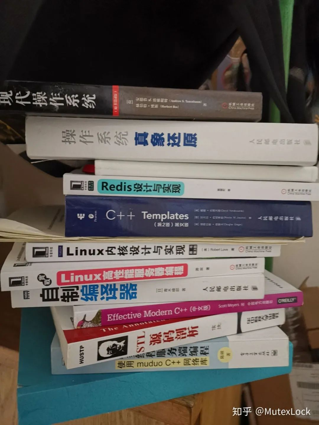 大二暑假和大三上也一直为这个目标奋斗,补上了APUE、部分UNP、深度探索C++对象模型、STL源码剖析、操作系统概念、操作系统真象还原、Linux多线程服务端编程、部分C++ template、部分C++ Concurrency in Action等书籍。