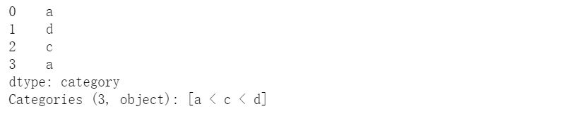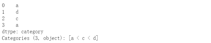 s = pd.Series(["a", "d", "c", "a"]).astype('category').cat.as_ordered()s
