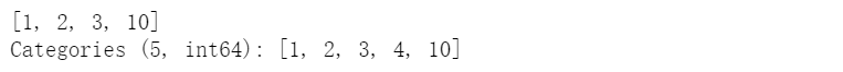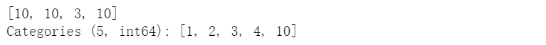 cat = pd.Categorical([1, 2, 3, 10], categories=[1, 2, 3, 4, 10])s = pd.Series(cat, name="cat")cat