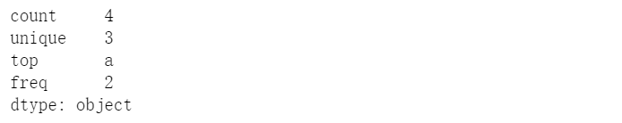 s = pd.Series(pd.Categorical(["a", "b", "c", "a",np.nan], categories=['a','b','c','d']))s.describe()