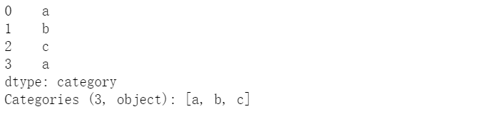 cat = pd.Categorical(["a", "b", "c", "a"], categories=['a','b','c'])pd.Series(cat)