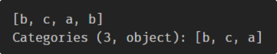 from pandas.api.types import union_categoricalsa = pd.Categorical(['b','c'])b = pd.Categorical(['a','b'])union_categoricals([a,b])
