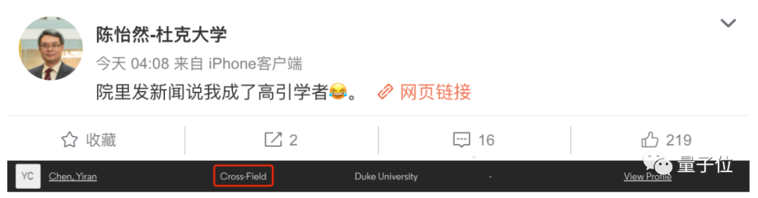 从榜单官网来看,他所在的领域属于“交叉学科”。