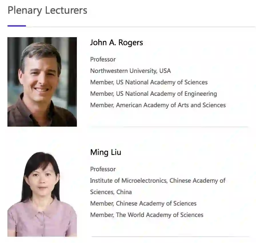 截止目前,大会邀请到了美国三院院士 John A. Rogers 教授、Takao Someya 教授、英国剑桥大学教授 George Malliaras、中科院院士刘明教授等 21 位国内外顶级专家为大家带来前瞻性学术报告。