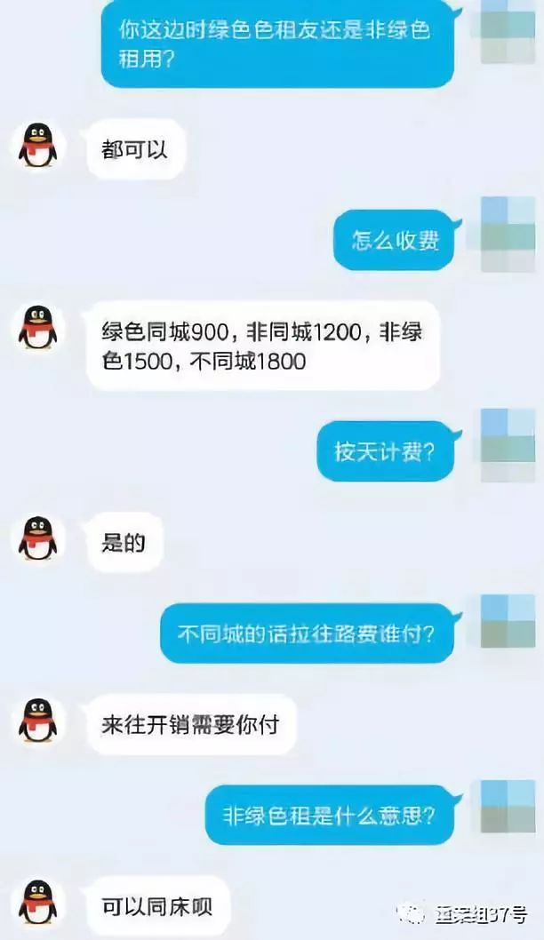 另外,在各租友网站上还有一些男性标出免费对外出租的信息,但实际上这些男性并非无目的地免费陪同女生游玩、回家过年,而是以女生与其发生性行为作为回报。