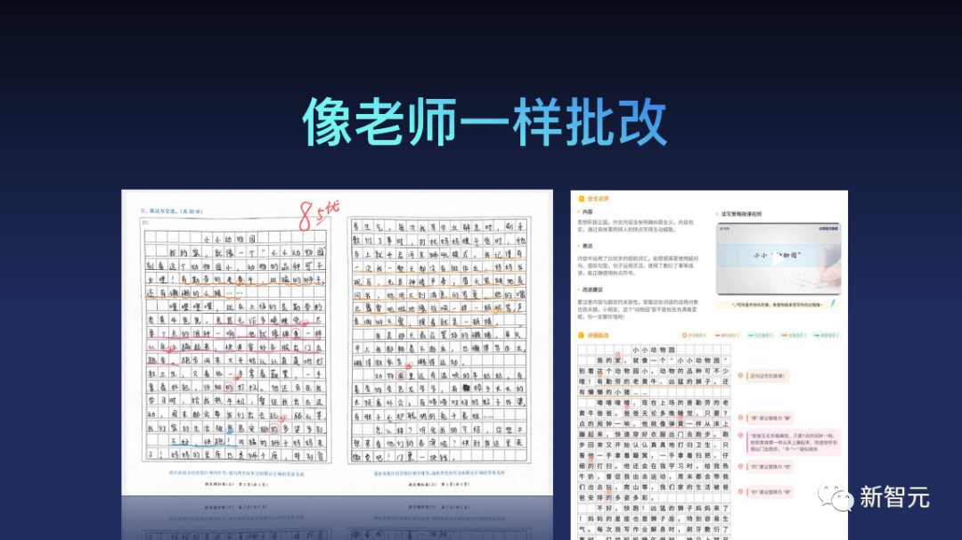 除此之外,在「能对语言做提升」方面,科大讯飞对语文、英语作文助手进行升级,采用中高考作文同源的批改技术进行作文批改,并按照不同年级作文要求的能力,精准推荐各个批改维度的正反例,提升孩子作文水平。