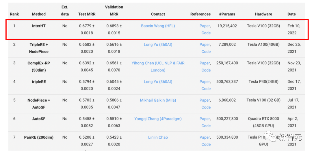2022年2月,以第一名的成绩登顶世界顶级人工智能挑战赛Open Graph Benchmark(OGB)知识图谱榜单。