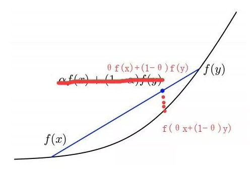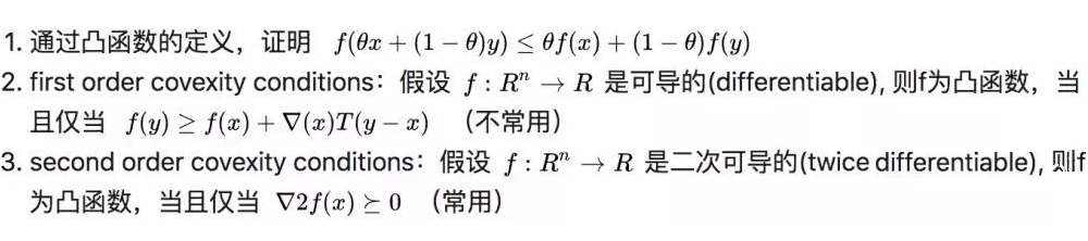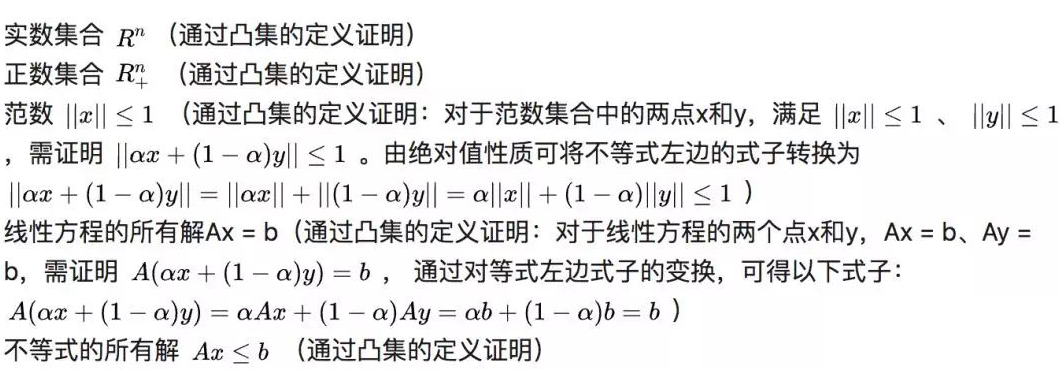 凸集的理解:对凸集的理解,我们可以分别从理论定义的角度和函数图像的角度两方面理解。从定义上讲,对于集合 C 中的任意两个元素 x 和 y,需要满足 αx + (1−α)y 的值也需要在集合 C 中;从函数图像角度讲,这个定义中的式子含义是,x、y 两点连线上的任意一个点都需要属于集合 C,如下图所示,任何证明集合是凸集的方法都可以通过定义和函数图像两方面进行。