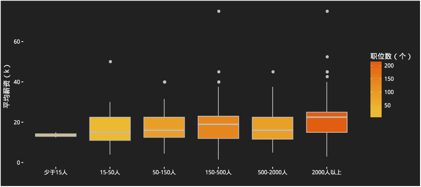 当你足够牛的时候,就是你来挑选市场了。去大公司还是小公司?去大公司。数据表明大公司的需求和薪资都显著性强于小公司。在移动互联网收尾,人工智能兴起的大数据时代,没有数据、没有资金、没有技术的小公司实在难有作为。