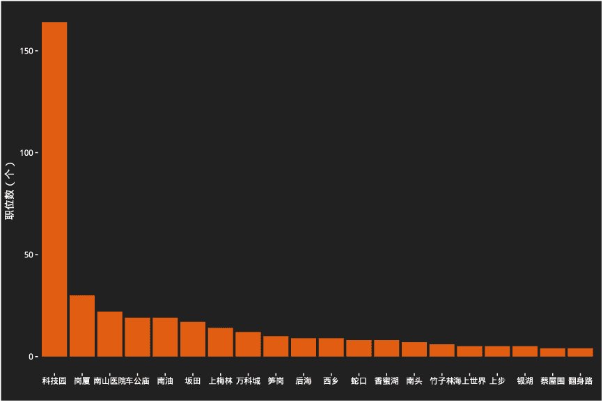 从拉勾爬取的数据拉勾,在深圳,对数据分析师需求量最大的地区为南山区,其次为福田区。这个当地的互联网企业分布有很大的关系,众所周知,深圳的互联网企业集中在南山区和福田区;