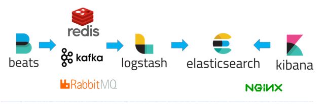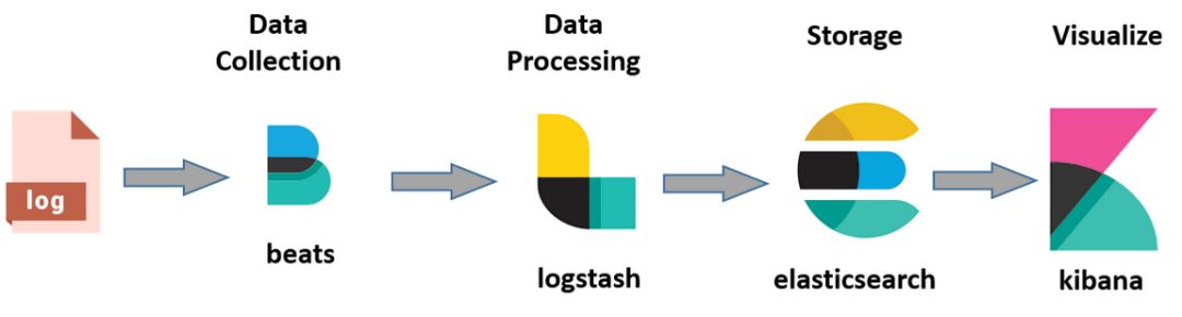 使用Beats(可选)在每台服务器上安装后,作为日志客户端收集器,然后通过Logstash进行统一的日志收集、解析、过滤等处理,再将数据发送给Elasticsearch中进行存储分析,最后使用Kibana来进行数据的展示。