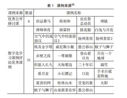 目前,电子书包环境下的教学还没有成熟科学的理论方法,大部分还处于试点实验阶段。在闵行区“电子书包”项目的推进过程中,通过教师们和专家地不断研究,通过反复磨课、研讨等,每年都会产生一定数量的优秀电子书包教学课例,如表1所示。为进一步研究,各个课例资源包括课堂实录、课前的教学设计、课中的教学资源以及课后的教学反思。本研究就选择了小学语文学科阅读课的35节优秀教学课例资源开展分析研究。