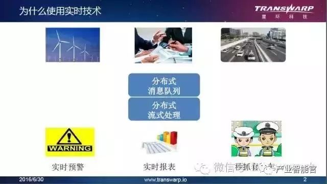 第一张图是风电的应用。那风电应用为什么需要实时技术呢?以前没有这个技术的时候,它的延迟比较高,一旦有发电机组发生问题,它很晚才能反映过来去维修。这样就耽误了最佳维修时间,也会产生资源的浪费。若此时运用分布式的消息队列加上分布式的流处理,就可以使其达到秒级的实时预警效果。