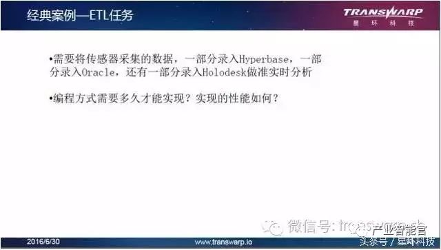 接下来的第二个案例是ETL任务的例子,像刚开头说到的风电的例子和交通稽查布控的例子其实就是他们主要用我们的系统做ETL任务。