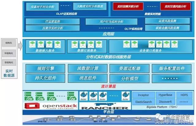平台层:一方面对所有组件做了模板化封装,以方便灵活部署在Docker容器或VM虚拟机上,使平台具备弹性扩展能力,另一方面实现与恒丰银行大数据平台无缝对接,将结果数据写入大数据平台或者从大数据平台实时获取数据。