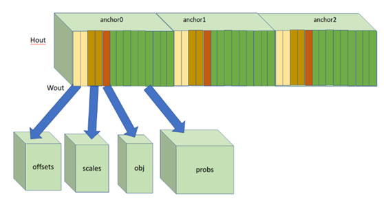 然后循环每个输出层,解析每个特征点对应的3个框与相关数据。