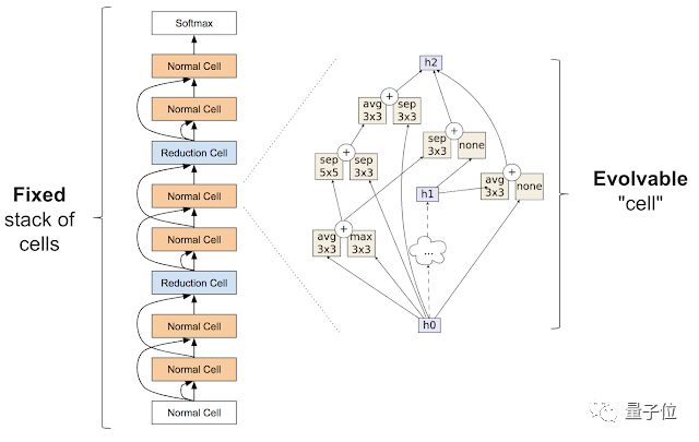 在上一次工作之后,谷歌大脑想减少模型进化过程中的试错成本。采用2017年Zoph的类inception模块,有效地把搜索空间缩小,并固定了神经网络的架构,其中网络上节点的模块是可以替换掉的。