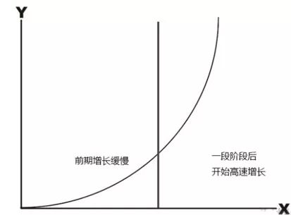 第二种是指数成长路径。起步会很困难,有一个漫长的成长期,但是只要步入正轨,他们的收入就会指数级增长。虽然也不是无限制的增长,但是对于对数成长路径的天花板来说还是高了太多。如公司合伙人,画家,歌星,获得高级技能等。指数成长路径当然是一个很理想的状态,但大多数情况可能会事与愿违。
