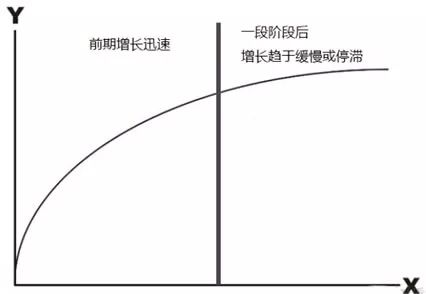我们先来看看个人成长或者说资产增长的三种路径,第一种是对数成长路径。他们的收入增长曲线如下,开始增长会比较快,但是也很快会进入瓶颈期,虽然后面随着经验的增长他们的收入也会缓慢增长,但是顶部是可预知的,是一条基本平缓的曲线。