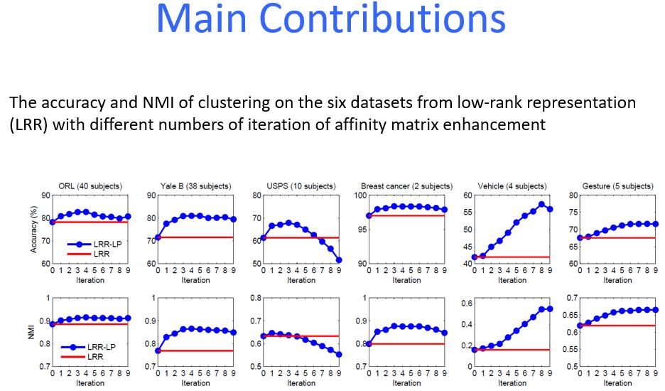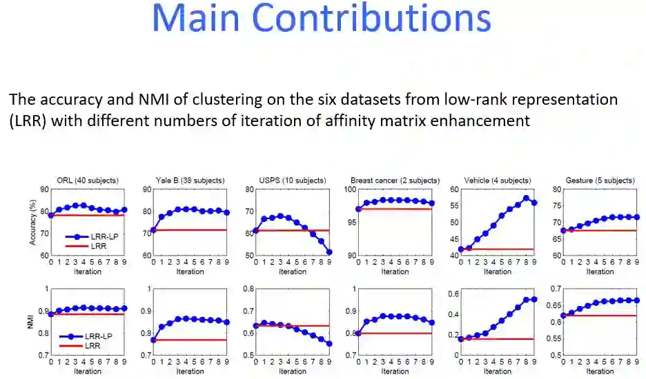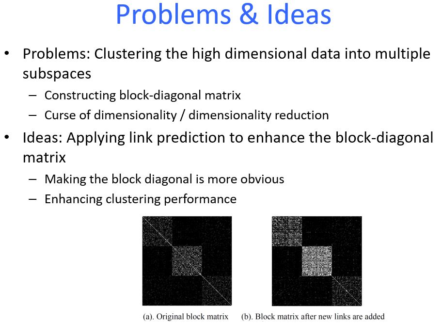 在高维数据中,许多维度间彼此不相关,并且,在噪声存在时,簇通常是隐藏信息。子空间聚类作为传统聚类的重要扩展,可以同时将高维数据聚类成几个子空间,并将低维子空间与相应的数据点相关联。在子空间聚类中,关键之一是构建具有块对角形式的关联矩阵,其中块对应于不同的簇。构建关联矩阵的两种主要类型的方法是基于距离的方法和基于表示的方法。通常,块内外密度之间的差异决定了聚类的效率和准确性。在本文中,我们使用统计物理中的链路预测方法来对关联矩阵进行增强,从而提升子空间聚类的效果。通过揭示每个块内部的隐藏链接,我们将关联矩阵对角线的每个块的密度进行提升,同时将其他数据尽可能地稀疏化。与现有方法相比,在已知数据集上,我们方法的聚类精度有着显著的提高。