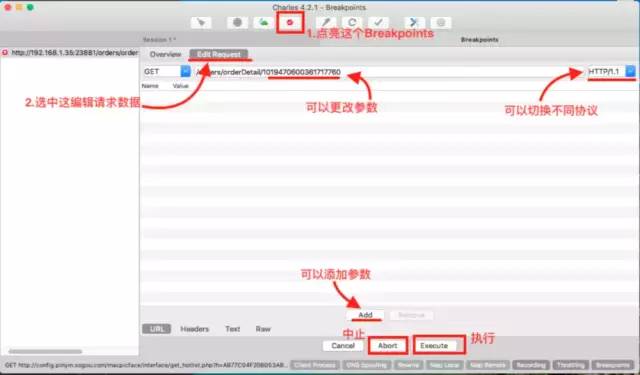 请求的父目录一般是域名头,要在这里打断点。注意:不是在下面的单个请求上打断点。