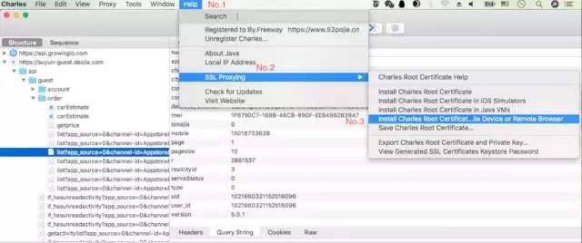 1、先在 Mac 设备的 Charles 进行如下操作。