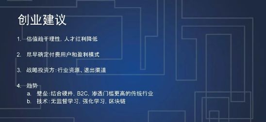 最后我想讲一下,就是创业的建议。有几点建议,可能给大家一些启发。