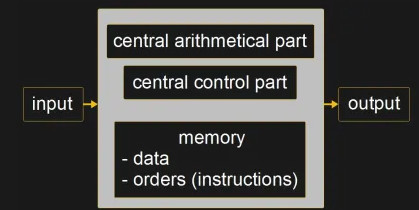 在研究过程中,巧合的是,在 1945 年,约翰·冯·诺依曼写了一份名为《关于 EDVAC 的报告初稿》的文件,其中他描述了后来被称为冯-诺依曼的计算机架构。在其中,他定义了计算机的各个部分,特别是程序存储在计算机的内存中。由于这个原因,它有时也被称为存储程序计算机。