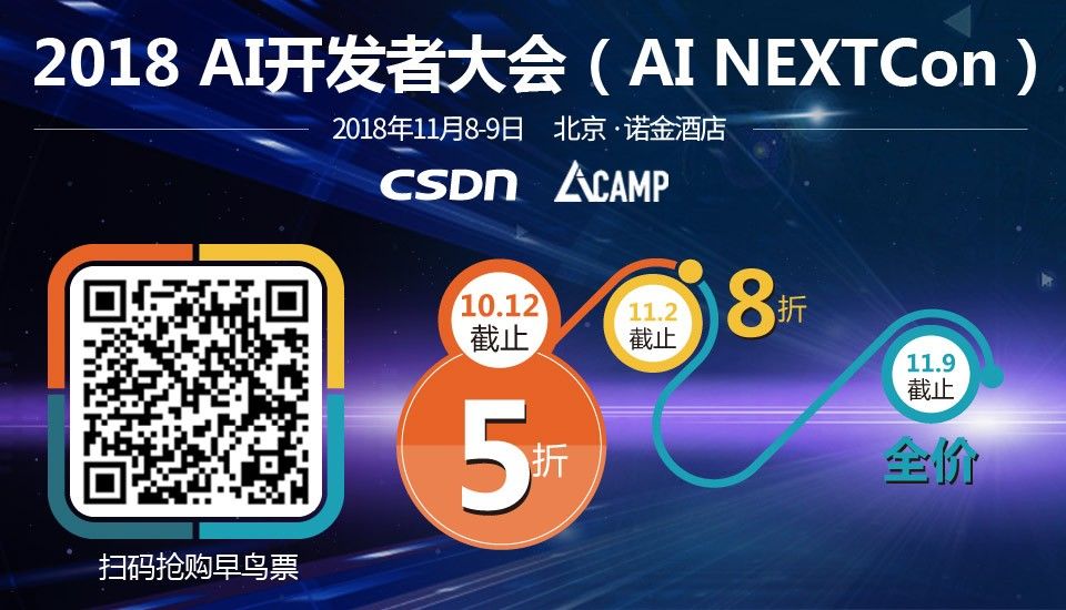 2018 AI开发者大会首轮深度议题现已火热出炉,扫码抢“鲜”看。即刻购票,立享 5 折优惠!