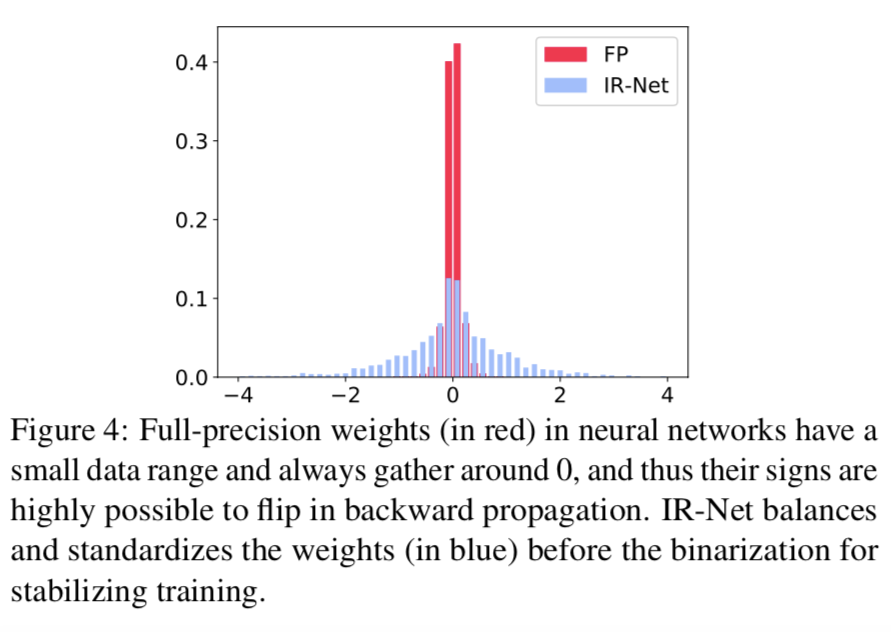 我们的分析表明,高精度二值神经网络训练的瓶颈主要在于训练过程中严重的信息损失。前向 sign 函数和后向梯度逼近所造成的信息损失严重影响了二值神经网络的精度。为了解决以上问题,本文提出了一种新的信息保持网络(IR-Net)模型,它保留了训练过程中的信息,实现了二值化模型的高精度。