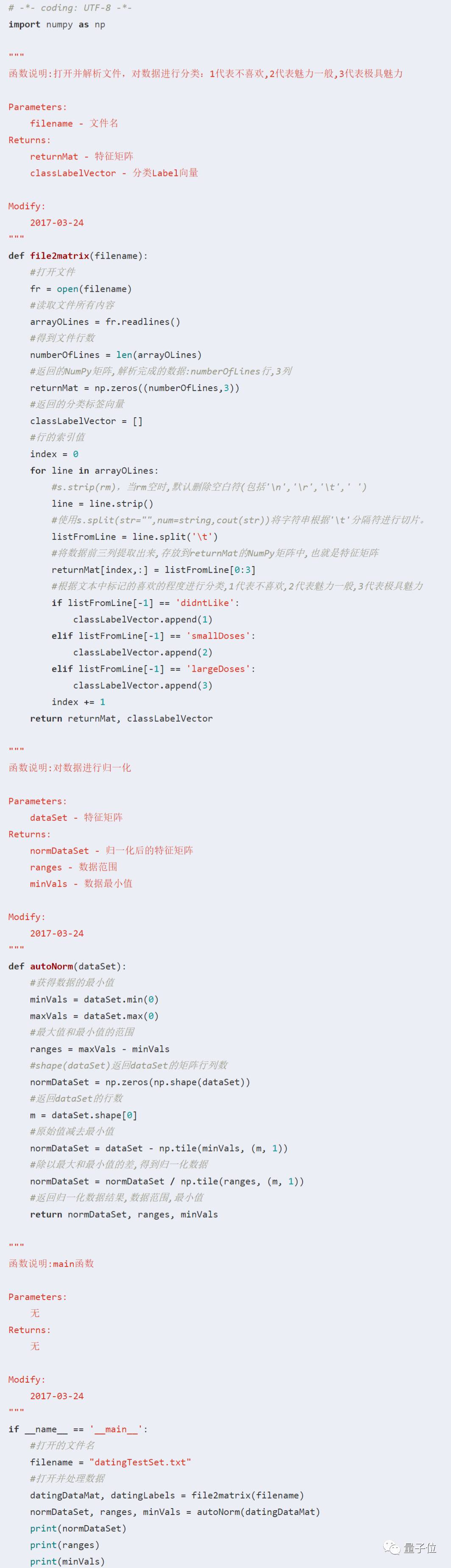 本文将从k-邻近算法的思想开始讲起,使用python3一步一步编写代码进行实战训练。并且,我也提供了相应的数据集,对代码进行了详细的注释。除此之外,本文也对sklearn实现k-邻近算法的方法进行了讲解。