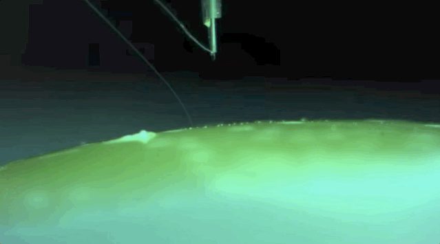能够每分钟自动插入六根线(包含192个电极)。在图中,它看起来像是显微镜和缝纫机之间的交叉。在进行植入时还可以避免血管,这可能减轻大脑中的炎症反应。