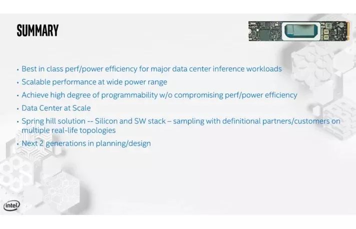 英特尔已经研发了两代NNP-I。该公司将在今年年底前开始批量生产,NNP-I已经开始提供样品。
