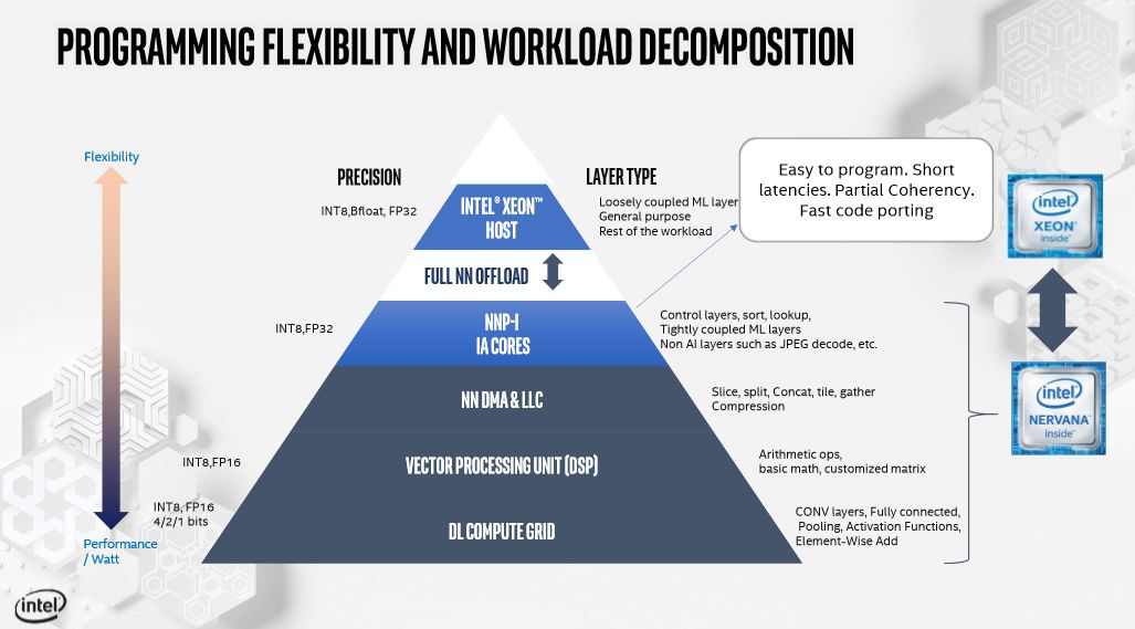 总之,分层设计允许Xeon向设备卸载几种不同类型的神经网络,每一层都支持一定的精度。请注意,上面的金字塔是根据每瓦特的性能排列的。