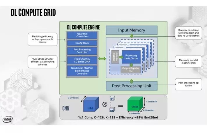 深入研究ICE引擎可以发现,每个ICE单元都有额外的4MB SRAM,有助于减少芯内数据移动,这在功耗和时间方面总是比实际的计算操作更昂贵。深度学习计算网格(DL Compute Grid)是一个张量引擎,通过数据和控制结构连接到SRAM和VP6 DSP。DSP引擎可以用于没有专门针对固定功能DL计算网格进行优化的算法。此外,其他代码可以在Ice Lake核心上使用VNNI运行,使多个模型可以同时在设备上运行,也为快速移动的AI空间提供了一些必需的前向兼容性。