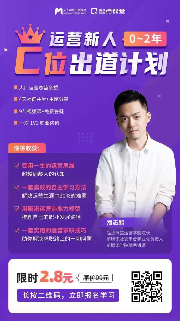 课程的购买二维码就在下面啦~每门课不要99,只要2.8元,大厂产品/运营专家“带回家”!扫码报名即可直接学习~