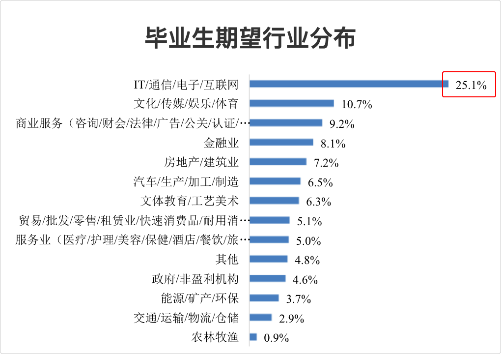 材料显示:2020年,超过25.1%的毕业生想进入互联网行业,比第二名、第三名和第四名加起来还要高。