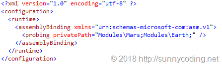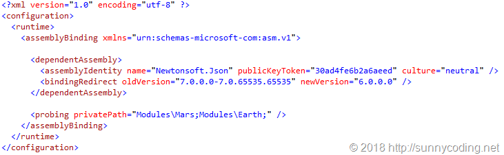 应用程序配置文件常见的有.exe.config和web.config两种。在配置文件中,可以在runtime节点下的assemblyBinding中进行配置。例如: