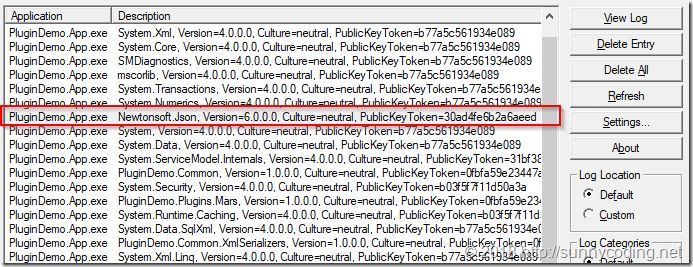 现在,刷新fuslogvw.exe,找到Newtonsoft.Json的日志: