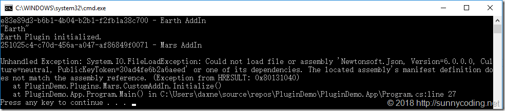 PluginDemo.App.exe正在试图加载PluginDemo.Plugins.Mars Assembly