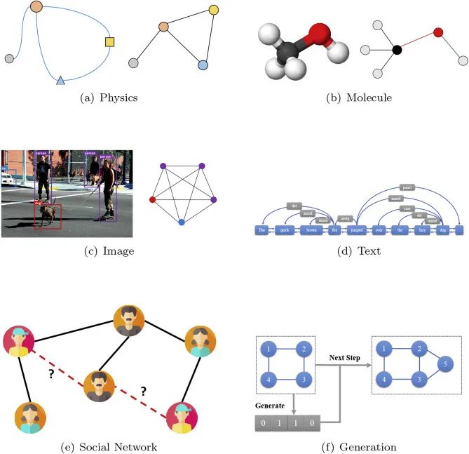 :通常可以分为结构化场景和非结构化场景。在结构化场景中,图结构在应用中比较明确,例如在分子、物理系统、知识图等上的应用。而在非结构化场景中,图是隐含的,因此首先要从任务中构建图,例如为文本构建一个完全连接的 “词” 图或为图像构建一个场景图。